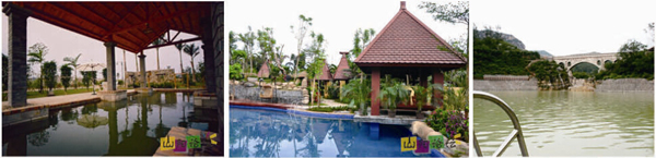 高山養生溫泉:有多功能溫泉酒店、室內游泳池、四合院、別墅湯屋、木質情侶及數十個特色水療湯池,構成完整的休閑養生基地。